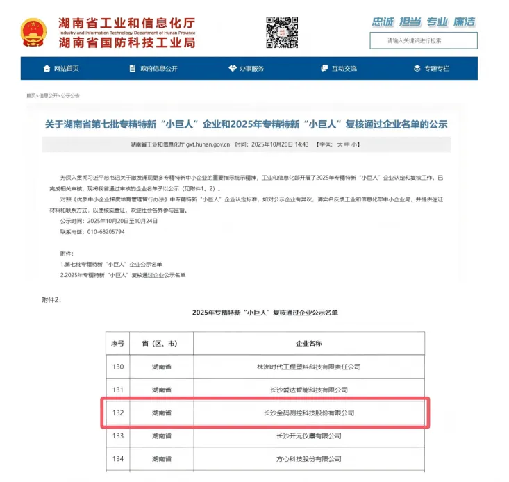 در اکتبر 2025، وزارت صنعت و فناوری اطلاعات فرآیند بررسی شرکتهای «غول کوچک» سال 2025 را تحت طبقهبندی «تخصصی، تصفیهشده، متمایز و نوآورانه» تکمیل و فهرست را رسما منتشر کرد. Kingmach Measurement & Monitoring Technology Co., Ltd بررسی دقیق را با موفقیت پشت سر گذاشته و این افتخار در سطح ملی را به لطف قابلیت نوآوری مداوم، قدرت فنی حرفه ای و عملکرد پایدار در بازار به دست آورده است.