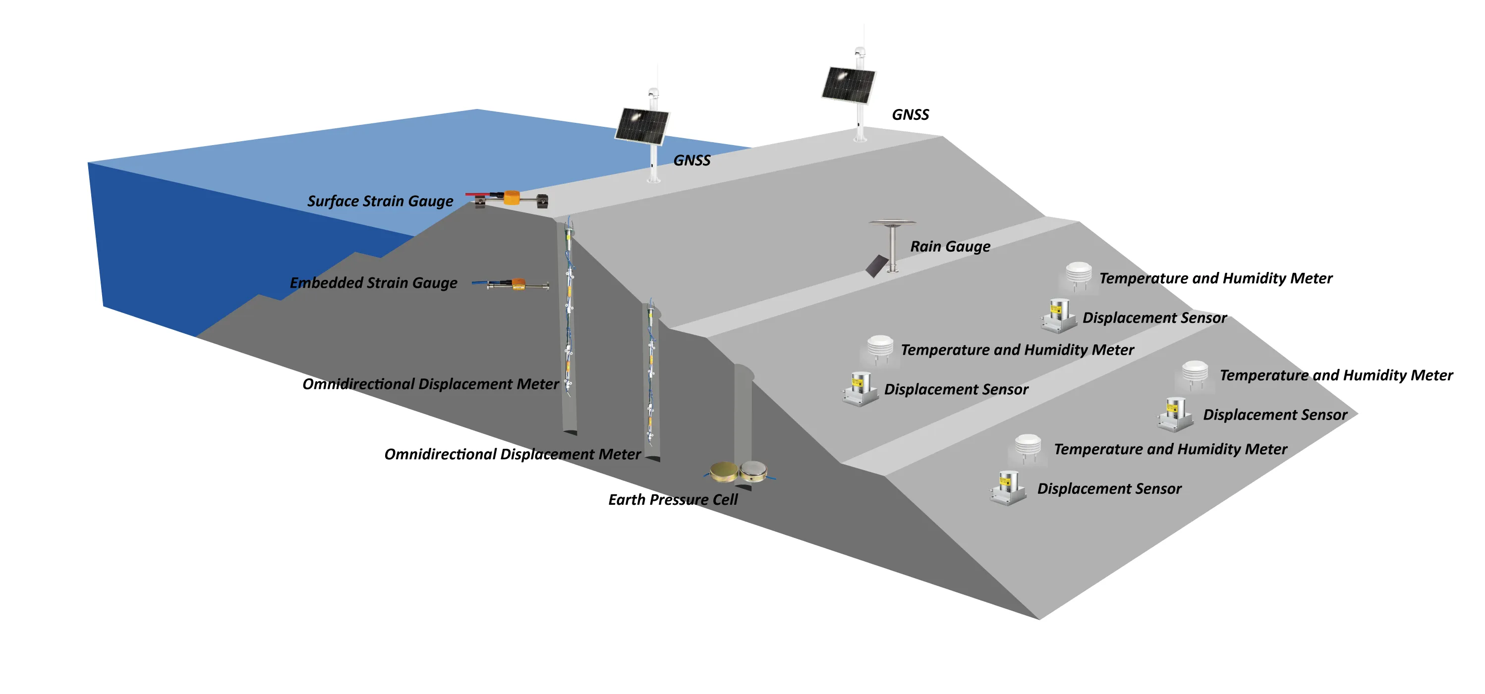 نظارت بر انحراف، پایش ترک، پایش محیطی، نظارت بر جابجایی عمیق، جابجایی سطح، نظارت بر نشست و غیره.